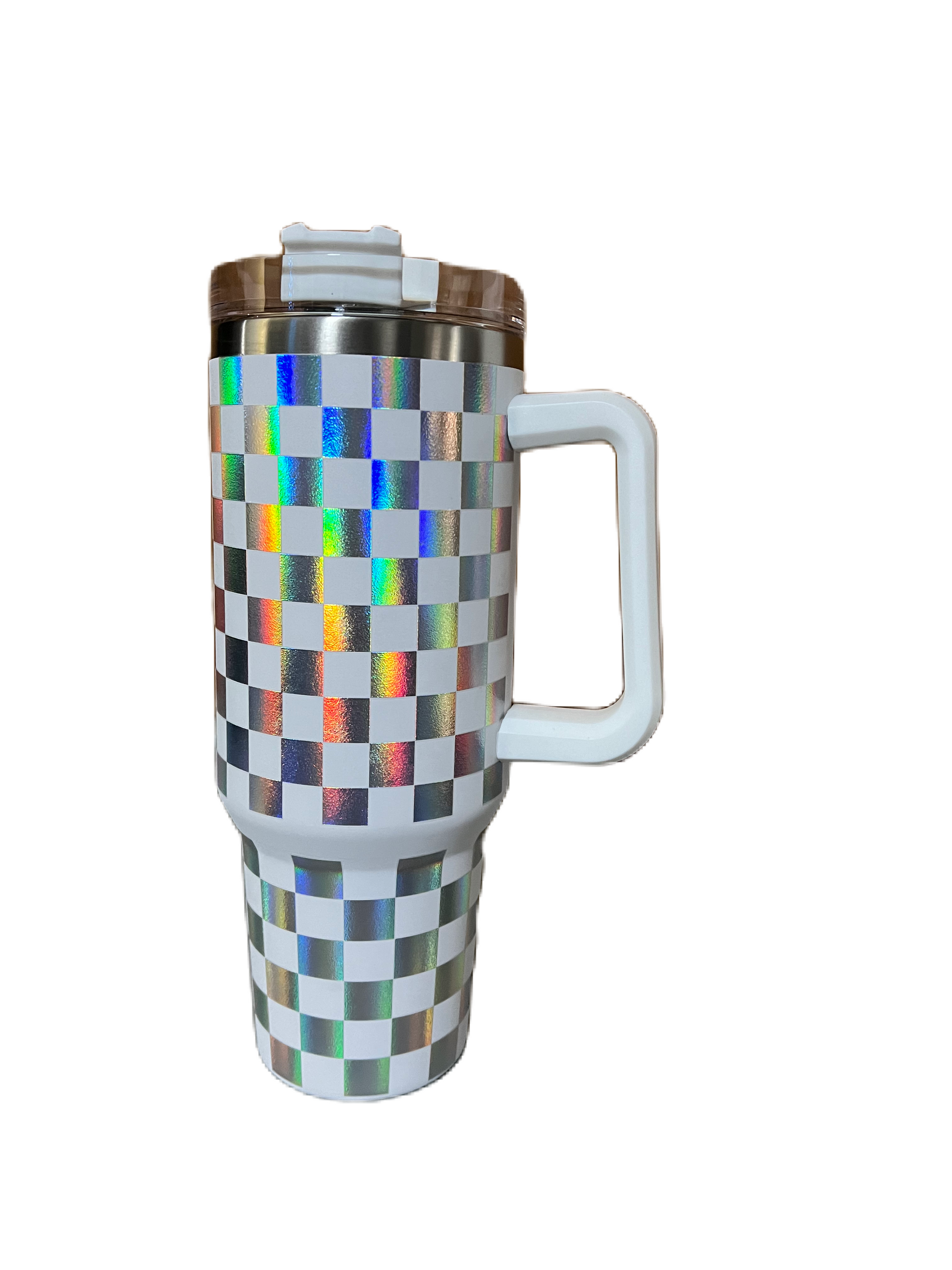 Checkered Pattern 40oz Tumbler with Handle and Straw